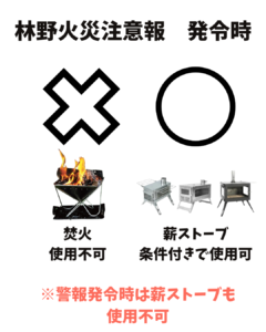 乾燥期の火災リスクを抑えつつ、冬場の暖房手段を確保するため、林野火災注意報発令時のルールを以下の通り変更・緩和いたします。